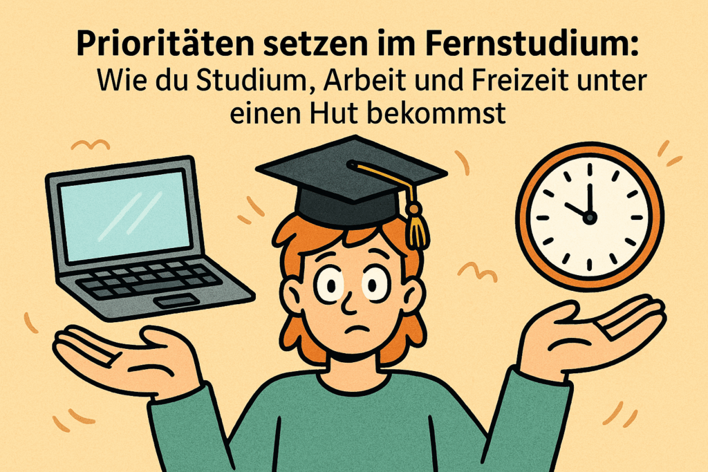 Ein Fernstudium ist eine großartige Chance – aber es bringt auch viele Herausforderungen mit sich. Besonders schwierig wird es, wenn du nebenbei arbeitest, vielleicht Familie hast und dir trotzdem Zeit für dich selbst wünschst. Alles gleichzeitig unter einen Hut zu bekommen, klappt selten ohne Plan. Deshalb ist es so wichtig, klare Prioritäten zu setzen und zu wissen, was wann wirklich zählt. In diesem Artikel zeige ich dir, wie du mit Struktur und ein paar einfachen Strategien deinen Alltag entspannter meisterst – und trotzdem weiterkommst.