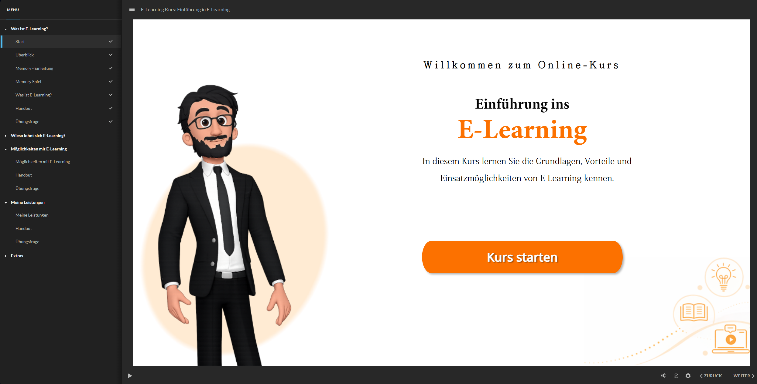• Interaktive Kursinhalte (z. B. mit Articulate oder Adapt), die Lernende aktiv einbinden
